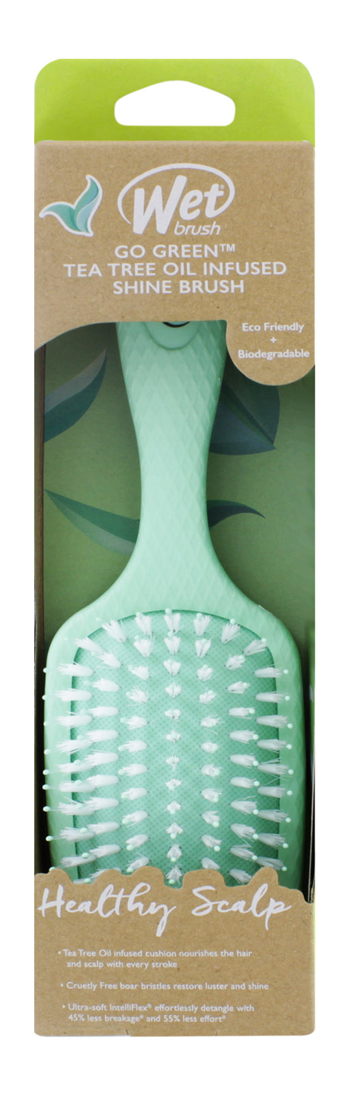 The Wet Brush Tea Tree Oil Infused Brush's cruelty-free boar bristles distribute natural oils, leaving hair shiny and smooth