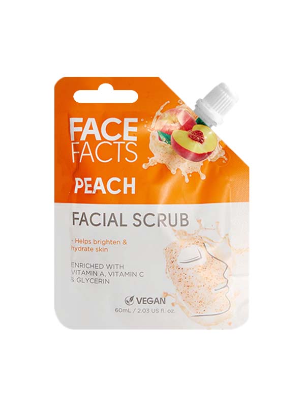 Face Facts Facial Scrub available in Peach or Cocunut to help cleanse skin and leave it feeling fresh and clean.