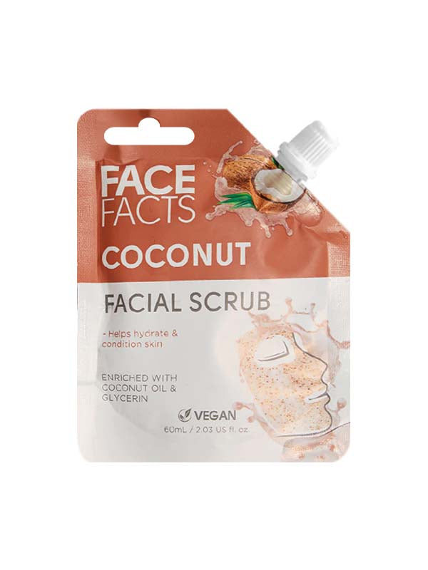 This scrub provides essential Vitamin C to brighten & tone the skin, whilst added Glycerin ensures skin is left deeply hydrated and smooth. Refresh & smooth skin with the Face Facts Coconut Facial Scrub- also packed with fragrant Coconut extract!