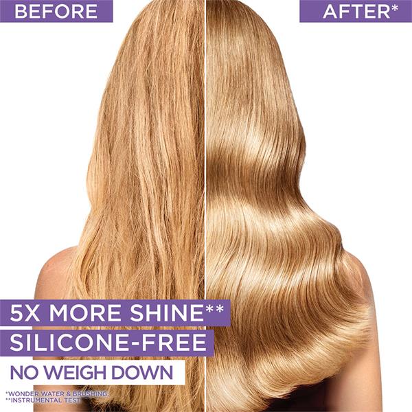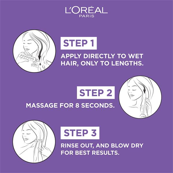 The ultra-lightweight, silicone-free formula is powered by breakthrough Lamellar Water Technology and infused with a shot of Hyaluronic Acid. It forms a film of care around the fibre to smooth hair and maintain a healthy look. Hair is visibly transformed with an instant and intense feeling of hydration, a glassy shine, and a silky touch. It works wonders in just 8 seconds.