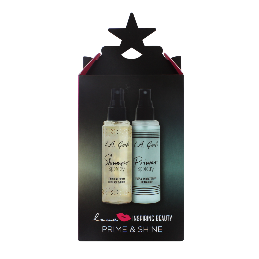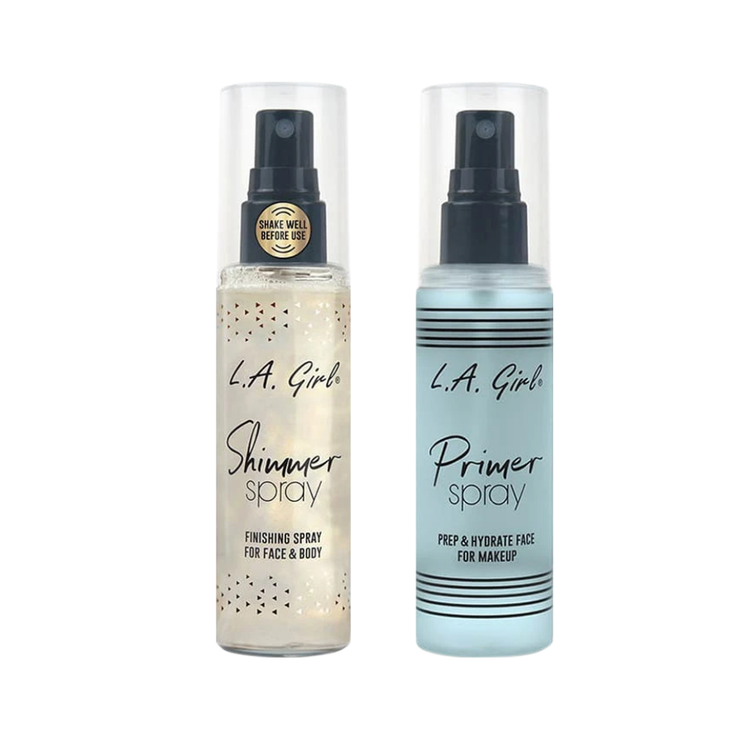 Prime, set and shine with ease! Mist the shimmer and primer sprays across the face and body.