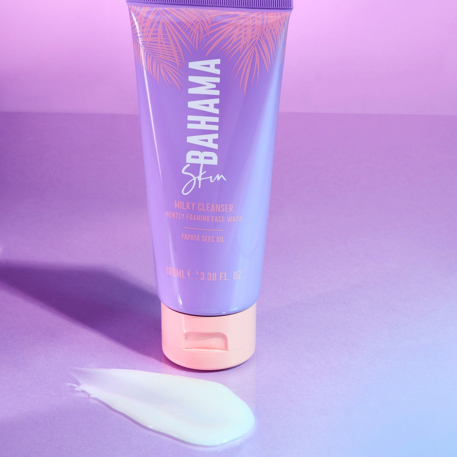 Your new skincare bestie from Bahama Skin, a gentle & effective MILKY CLEANSER for daily use that transforms into a soft lather to remove dirt, makeup, and impurities from the skin. A formula packed with skin loving ingredients including Papaya Seed Oil, Orange Seed Oil, Vitamin E and White Tea Extract to give a squeaky clean canvas.