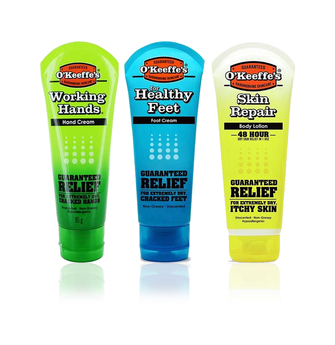 O'Keeffe's offers guaranteed relief for extremely dry, cracked skin.