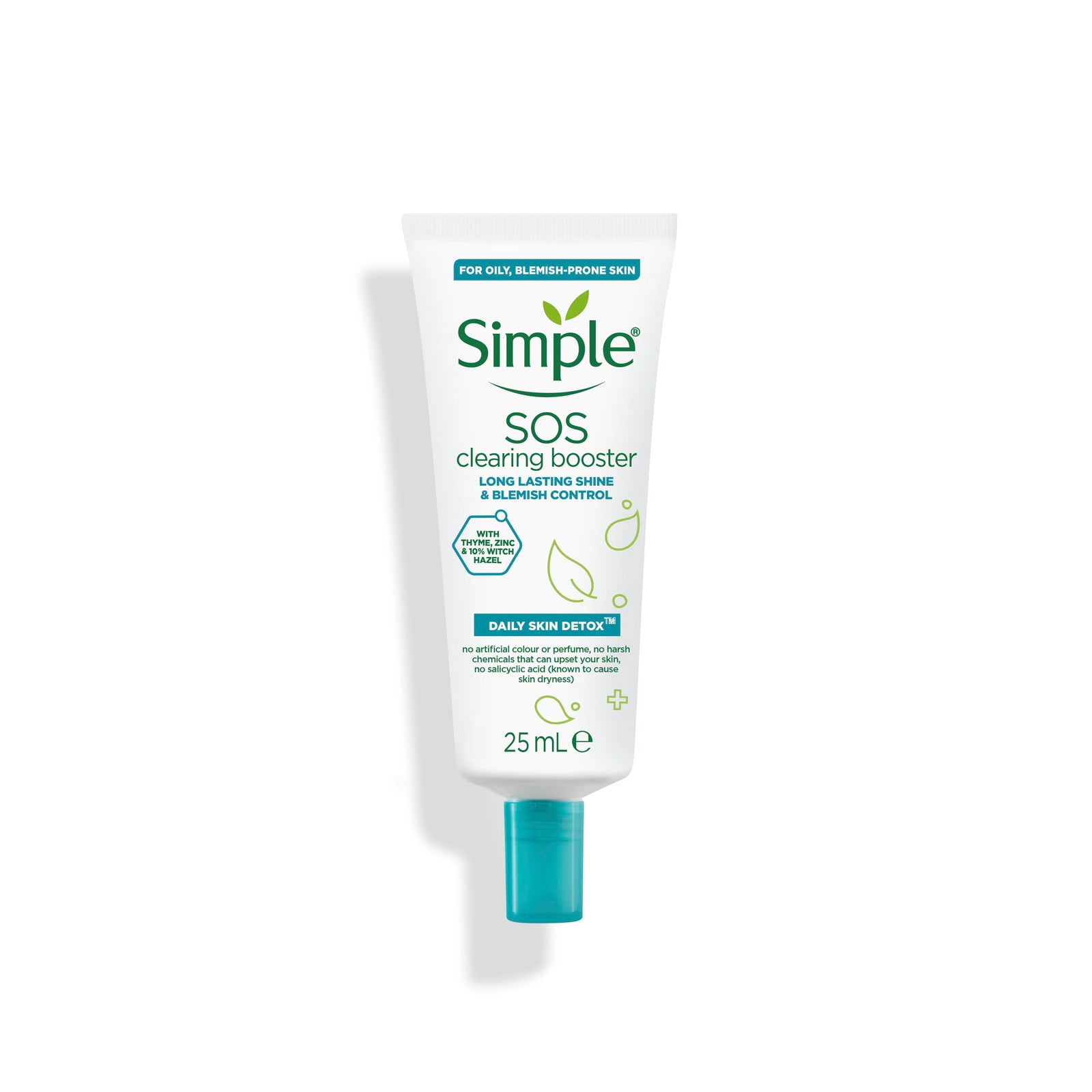 Simple Daily Skin Detox SOS Clearing Booster is made with a detoxifying blend of concentrated 10% witch hazel, thyme and zinc, to provide long-lasting results against oily skin and blemishes whilst being gentle on your skin.