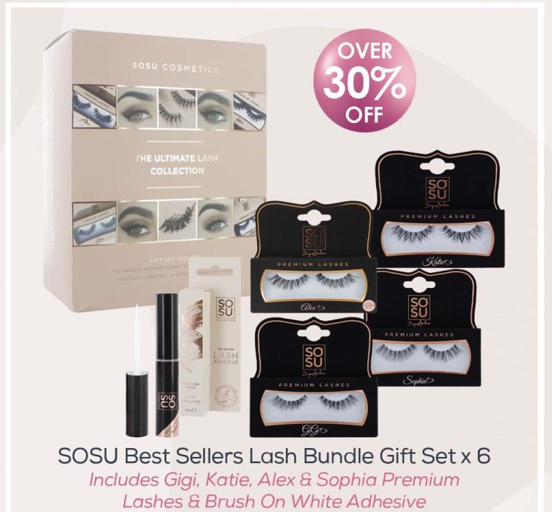 A lash lovers dream gift set from SOSU Cosmetics, containing x 4 pairs of premium lash styles and x 1 lash adhesive for amazing value!