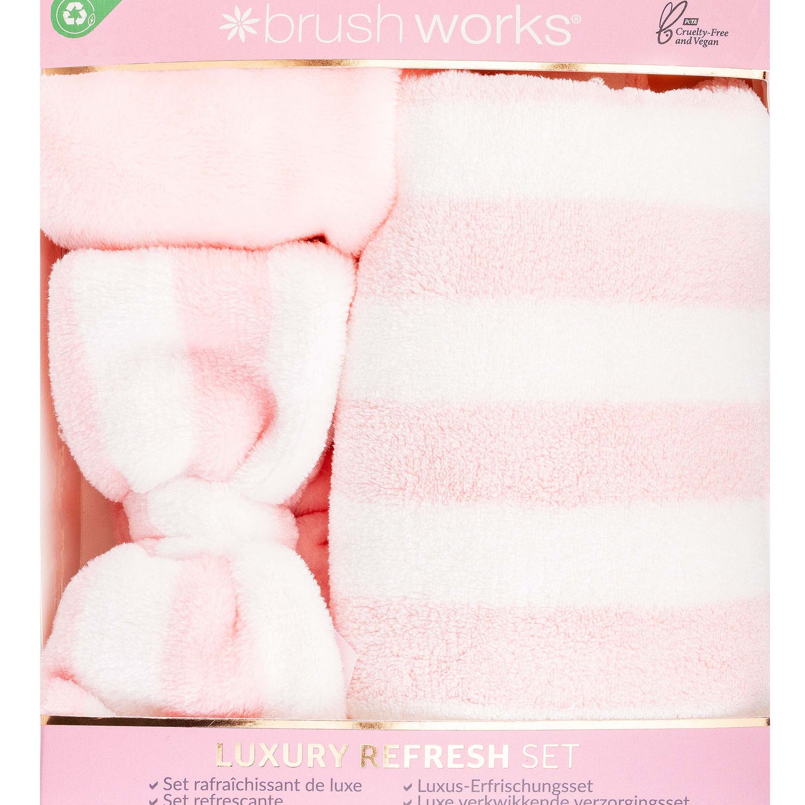 Secure your hair with ease and remove makeup before washing and drying your hair with the luxuriously soft hair towel. This set includes a makeup headband, makeup remover cloth and a luxury hair towel.