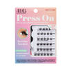 1-step, just press…it’s effortless! Pre-glued so lashes adhere instantly and hold all day. No glue, no fuss, no muss. Press-on extensions go under natural lashes so bands can’t be seen.